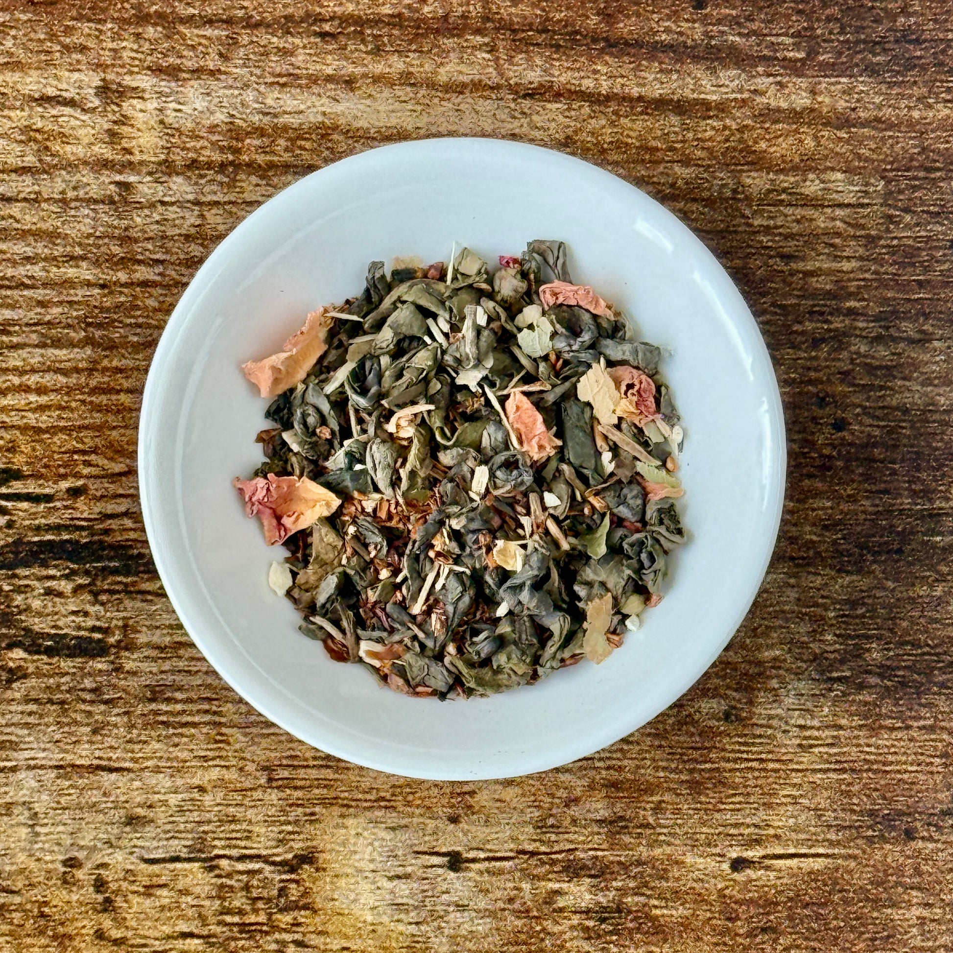 Green Tea, Rooibos, Ginseng Root, Linden Blossom, Rose Petals, Lemon Peel, Orange Peel